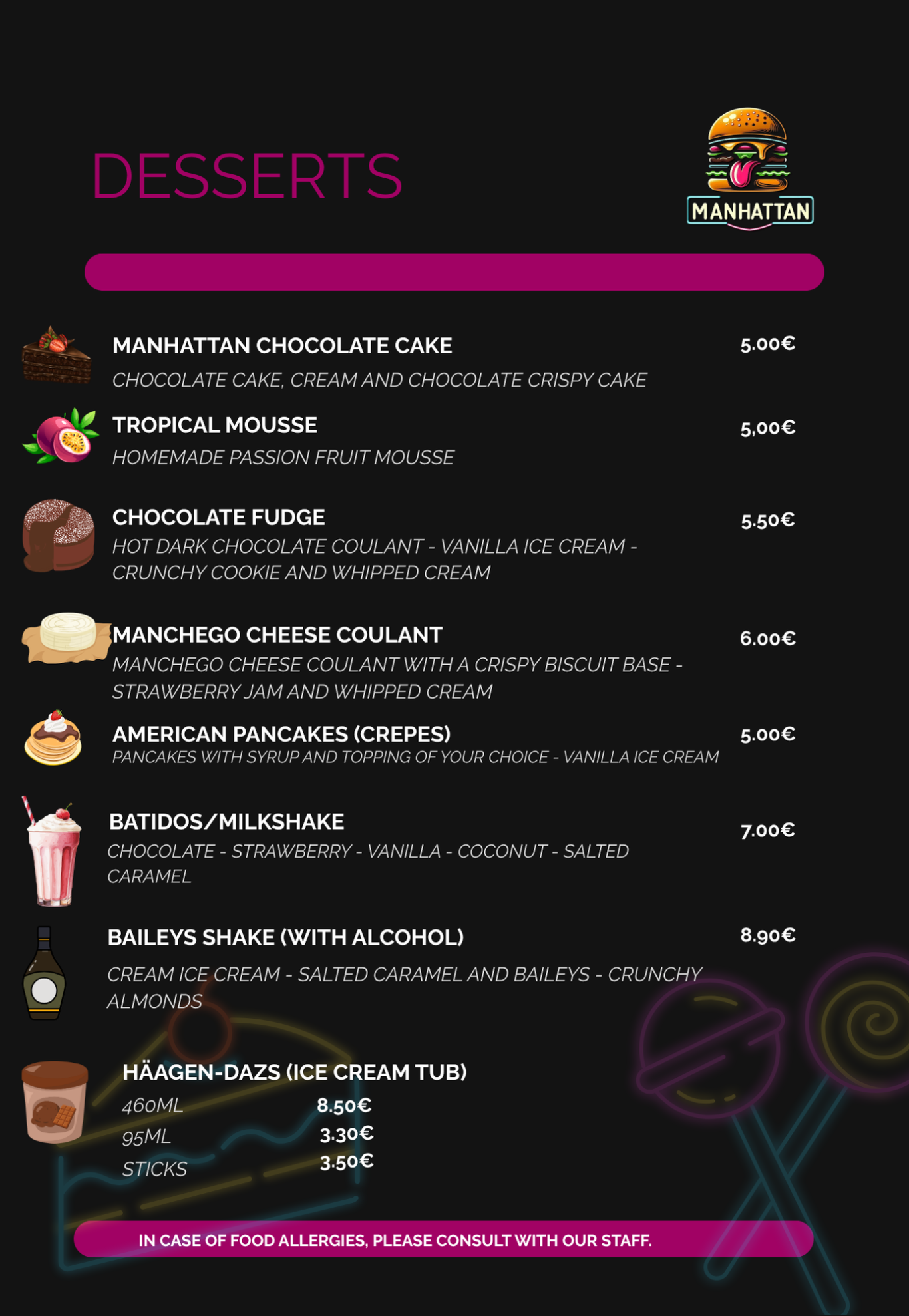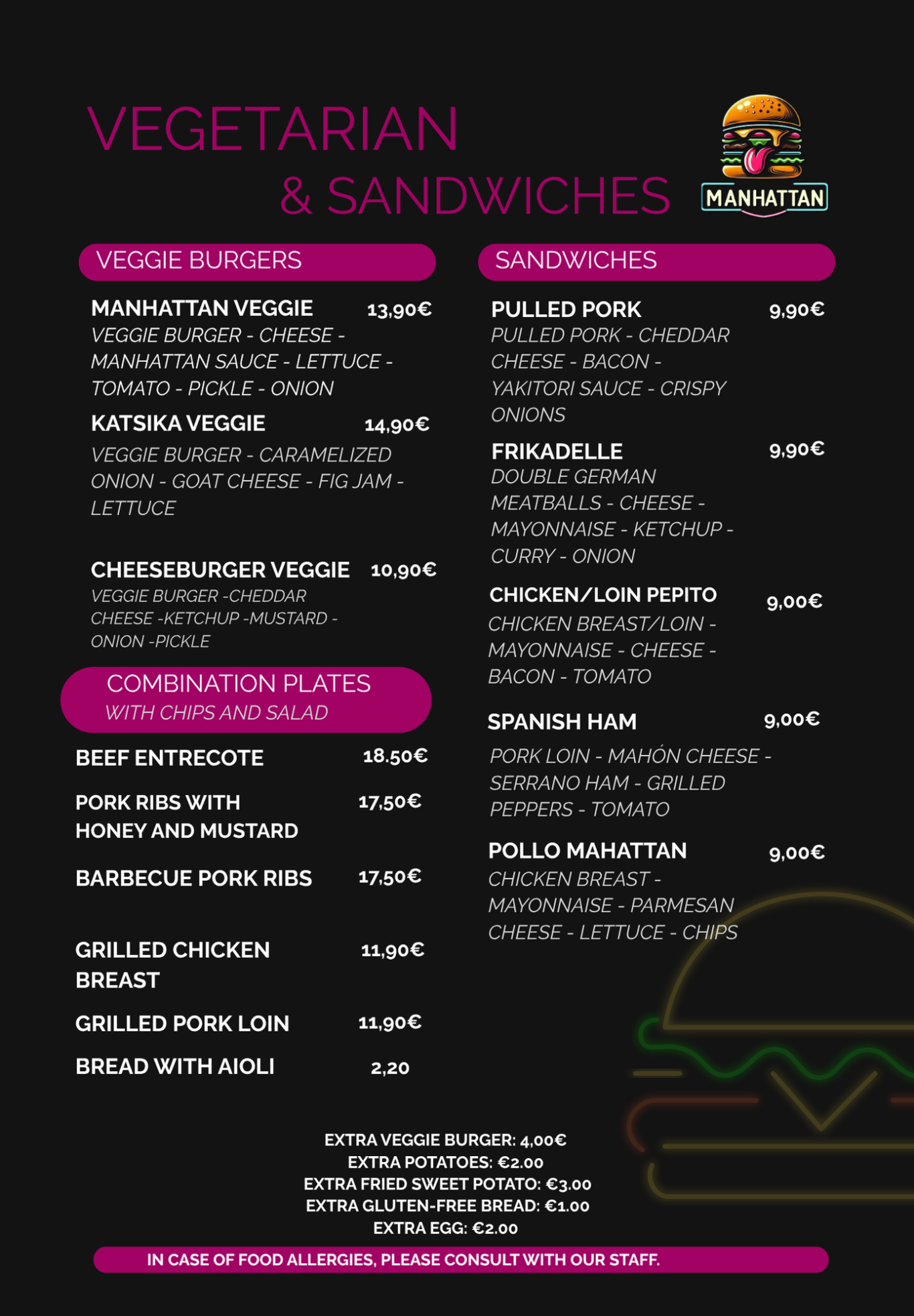 We offer gluten-free bread, but we are NOT a gluten-free establishment. There is a risk of cross-contamination